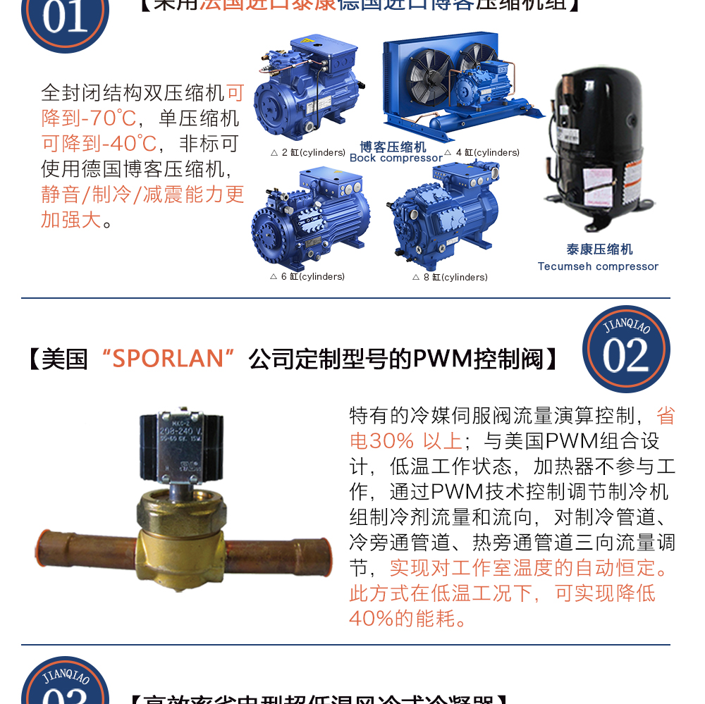 用途:快速溫變試驗箱主要用來測試各種材料耐熱、耐寒、耐干、耐濕的性能。本機采用中英文顯示彩色觸控式屏幕畫面,操作簡單,程序編輯容易,可顯示完整的系統操作狀況相關數據、執