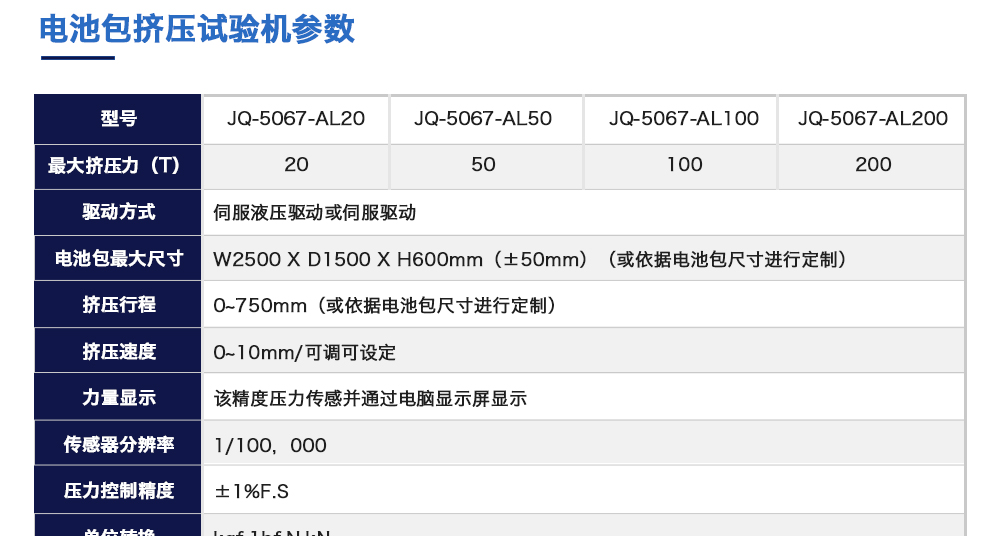• 電池包擠壓試驗機