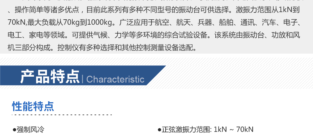 用途:風冷電動振動系統,推力大,承載能力強,冷卻效率高??煞謩e完成三軸向的正弦振動試驗、寬帶隨機振動試驗以及經典(半正弦、梯形、后峰齒)脈沖和沖擊響應譜試驗。