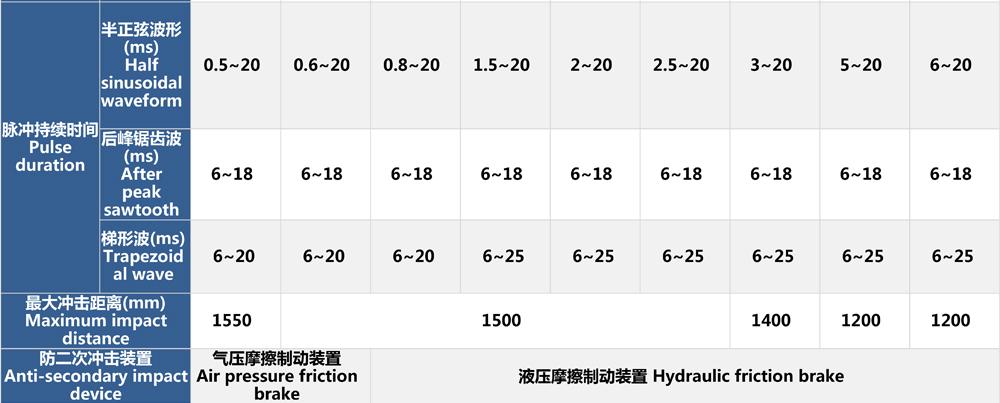 公司產(chǎn)品樣本中分別標(biāo)注出了各型號氣動沖擊碰撞試驗臺的空載和標(biāo)稱加載狀態(tài)下的速度變化量,用戶可根據(jù)自身試驗指標(biāo)來選擇適合自身需求的沖擊臺。