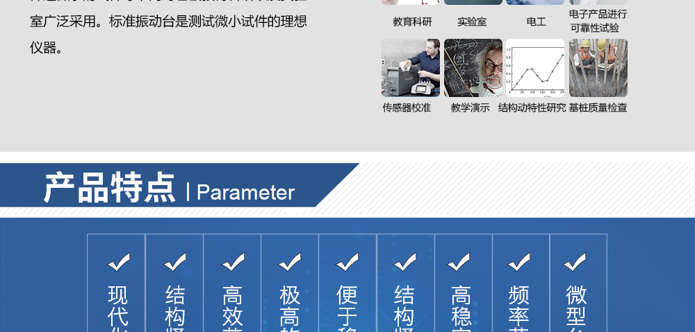用途:小型標(biāo)準(zhǔn)振動(dòng)臺(tái)具有很寬的可用頻帶,質(zhì)量小便于移動(dòng),廣泛用于加速度傳感器的校準(zhǔn)、分離和篩選微小的試件等,同時(shí)也被教育科研以及實(shí)驗(yàn)室廣泛采用。